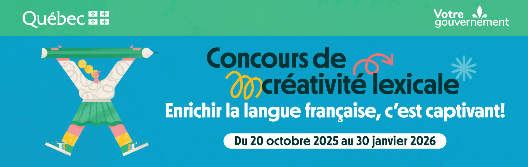 L’Office québécois de la langue française invite les enseignantes et enseignants de français au secondaire à participer avec leurs élèves au Concours de créativité lexicale, qui se déroulera cette année du 20 octobre 2025 au 30 janvier 2026. N’oubliez pas d’inscrire ces dates à votre agenda!